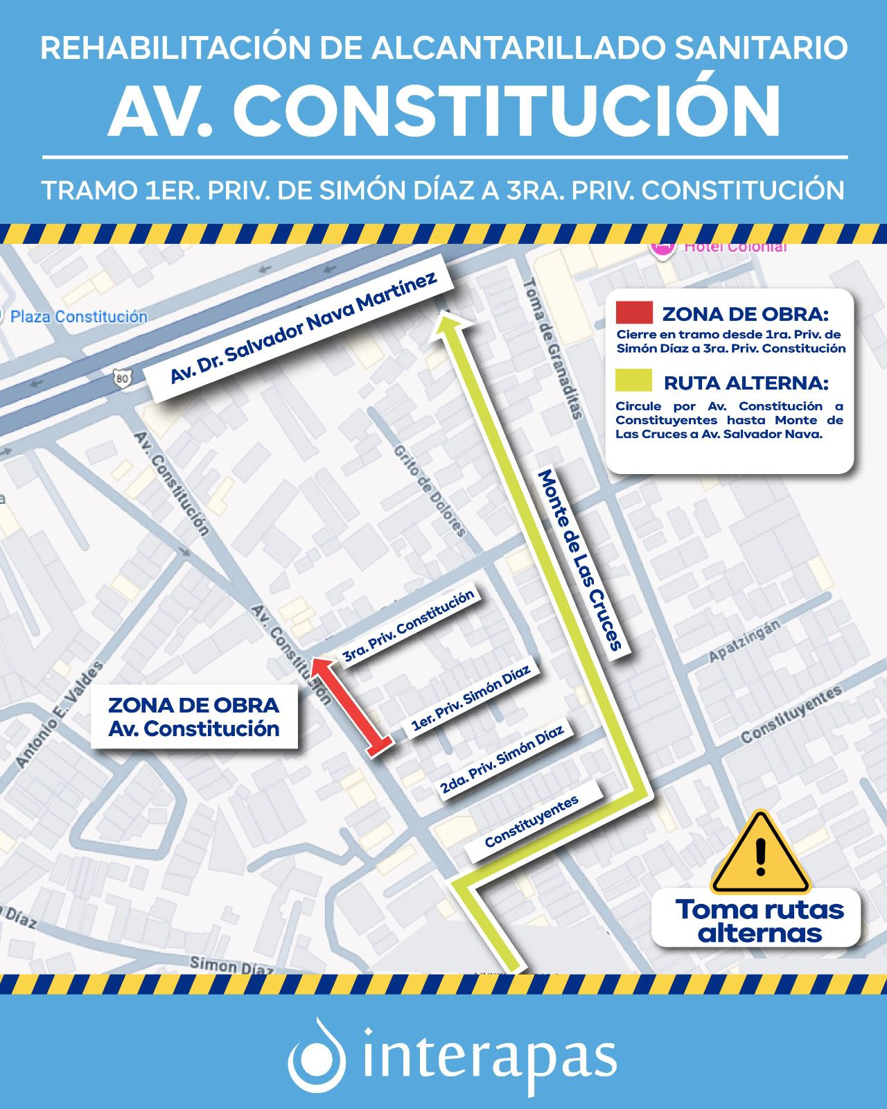 • Debido a los trabajos sobre la avenida, a la altura de la colonia Santa Fe, se habilitaron rutas alternas. ...